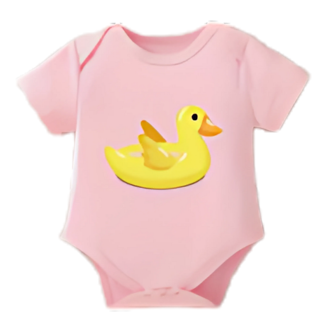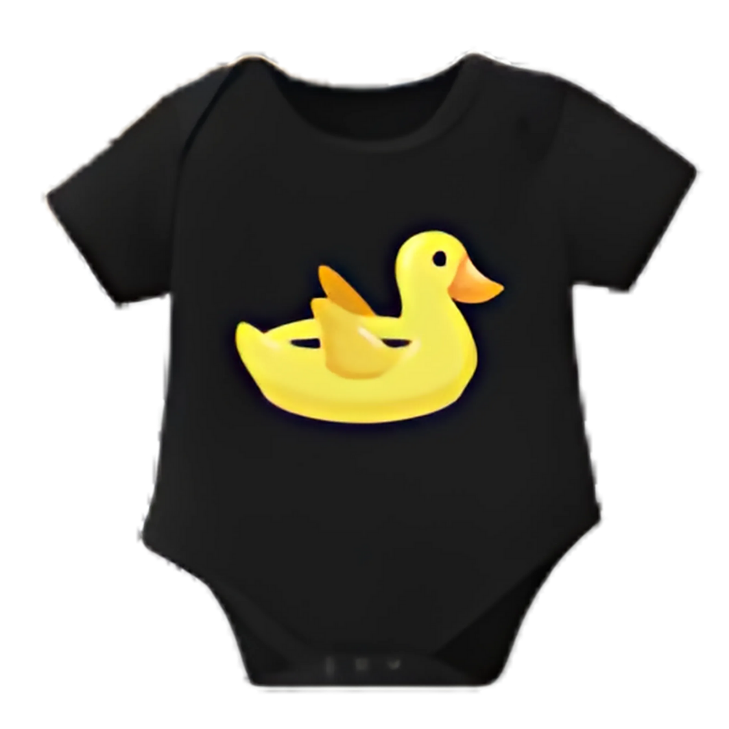 Duck it up met dit schattige eendenrompertje! Beschikbaar in kleuren roze of zwart, gemaakt van 100% katoen, met een kwalitatief mooie opdruk van een opblaaseend voorop.