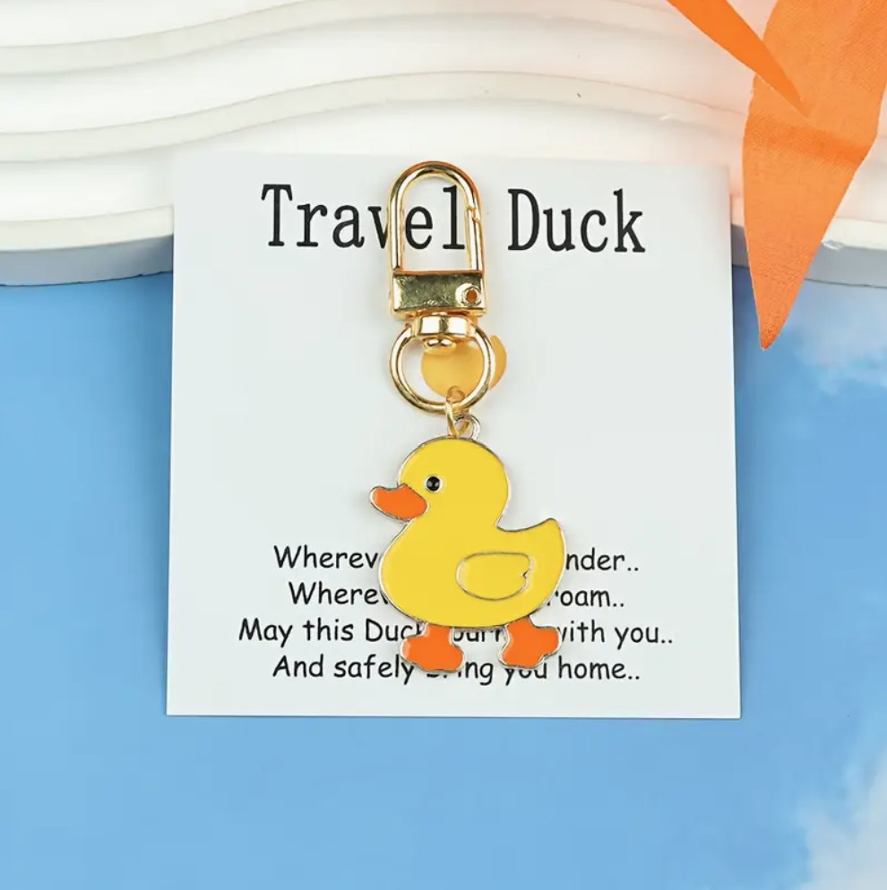Nergens meer naartoe zonder jouw Travel Duck! Deze super leuke tassenhanger / sleutelhanger vrolijkt elke reis op.