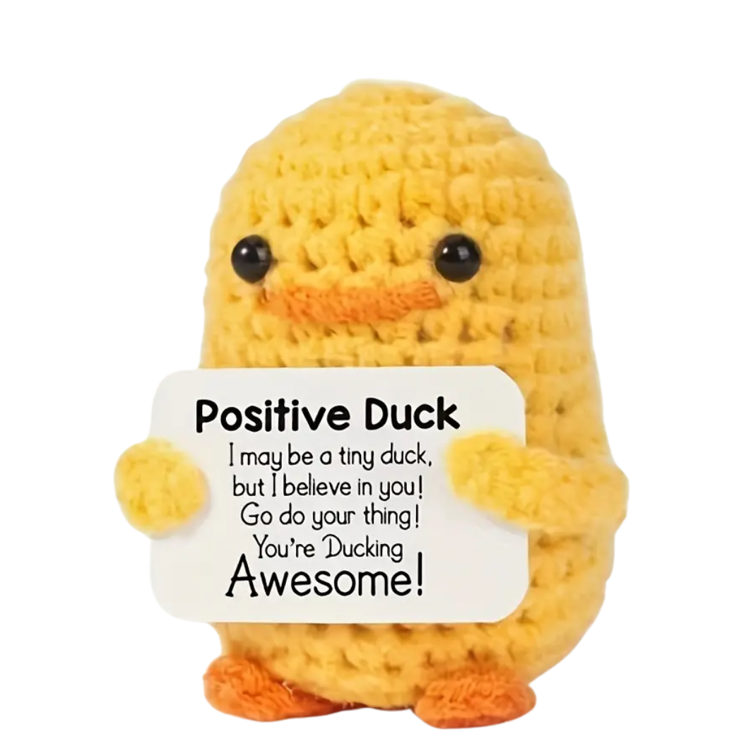 Als je je niet zo lekker in je vel voelt, helpt deze eend je als geen ander! Met de geruststellende tekst die erop staat voel je je zo weer goed. Het eendje is handgehaakt en van 100% katoen vervaardigd. Het tekstje is met 100% liefde speciaal voor jou, of de geluksvogel die hem krijgt, geschreven.