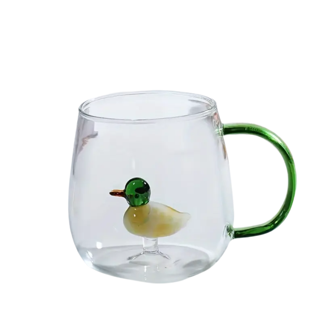 Deze classy glazen mok met 3d eend erin is het perfecte glas voor jouw thee, koffie, matcha of gewoon limonade! Het glas is met de hand geblazen en de eend zit stevig vervaardigd aan de bodem van je glas.