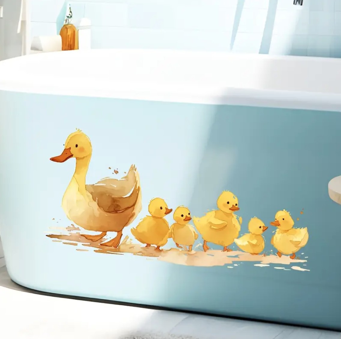Elke kamer heeft deze super leuke muursticker nodig met een compleet eendengezinnetje. Gezellige eendjes die door je kamer waggelen, dat wil toch iedereen? Je kunt hem ook op je badkuip of douchewand plakken en lekker met eendjes badderen!