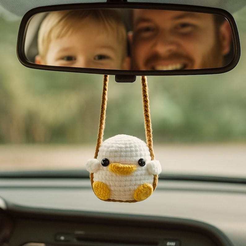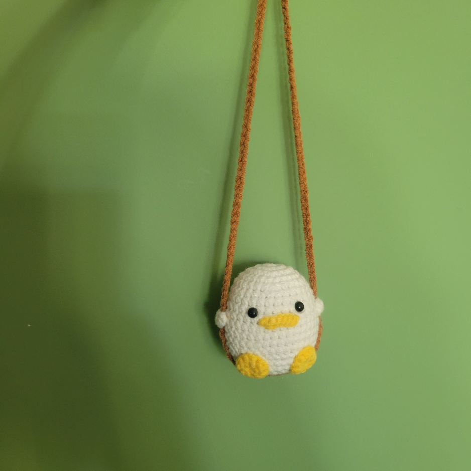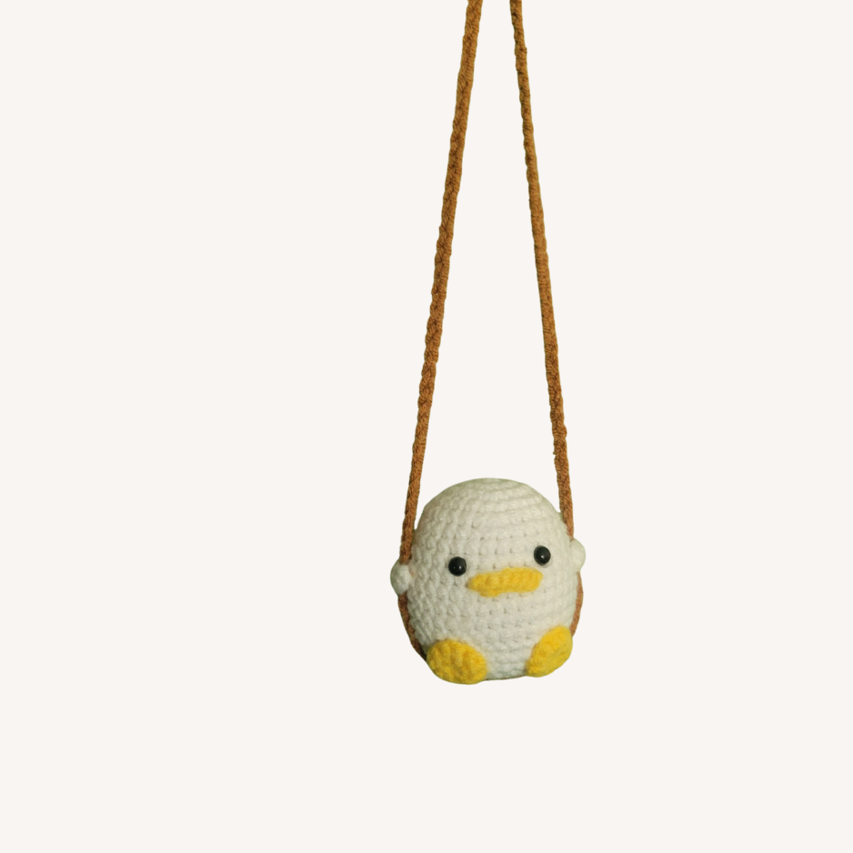 Zie je het voor je? Een klein wit eendje dat gezellig in jouw kamer of auto rond schommelt? Dit met de hand gehaakte, witte eendje met schattige gele voetjes en snavel en zwarte kraaloogjes schommelt erop los. Leuk als pick-me-up kadootje, een verjaardag of natuurlijk als origineel kraamkadootje: voor in de babykamer!